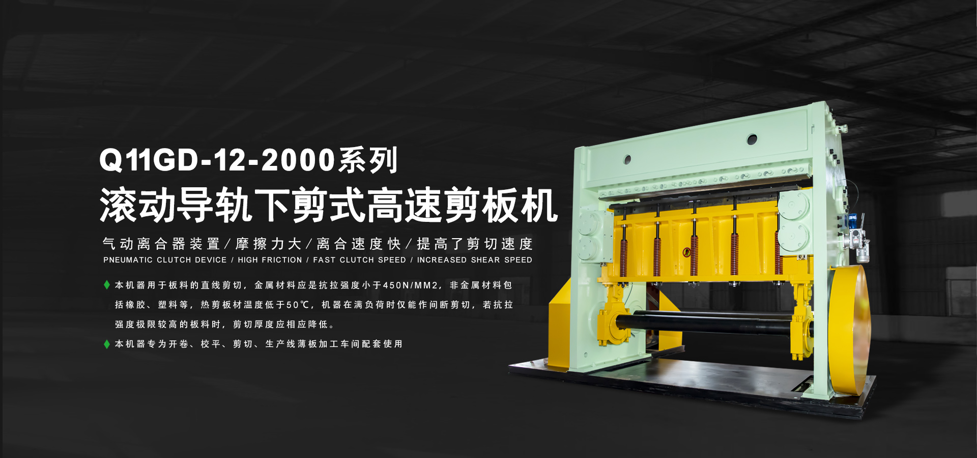 Q11系列精密剪板機主要特點:剪切精度好;后擋料采用齒條齒輪傳動(手動、電動)控制尺寸好,傳動采用電磁吸盤制動,電機與閉合式齒輪箱與軸轉動,結構緊湊;